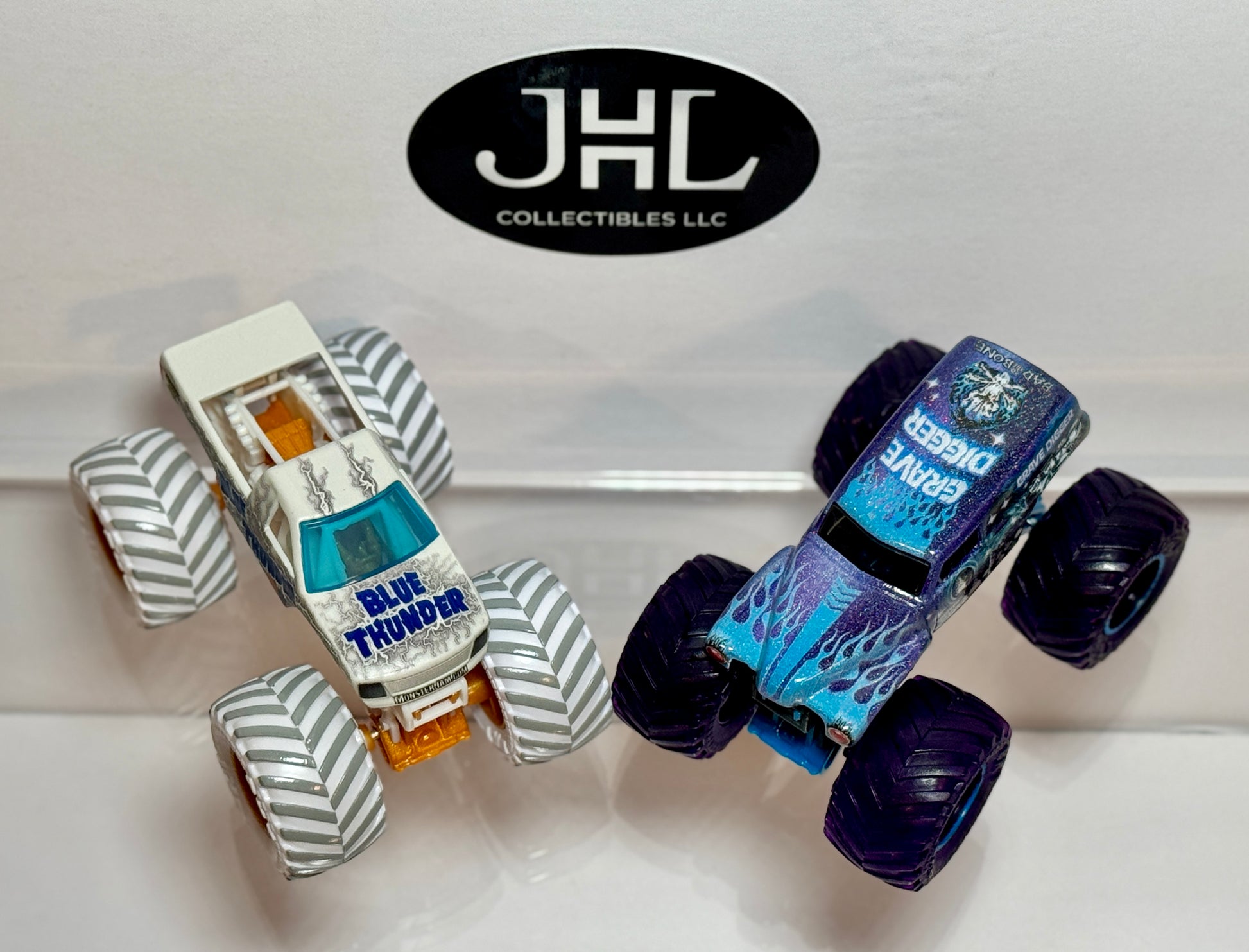 This Blue Thunder vs Grave Digger Gears & Galaxies duo delivers a perfect mix of futuristic engineering and cosmic flair — making it an essential addition to any Monster Jam collection.