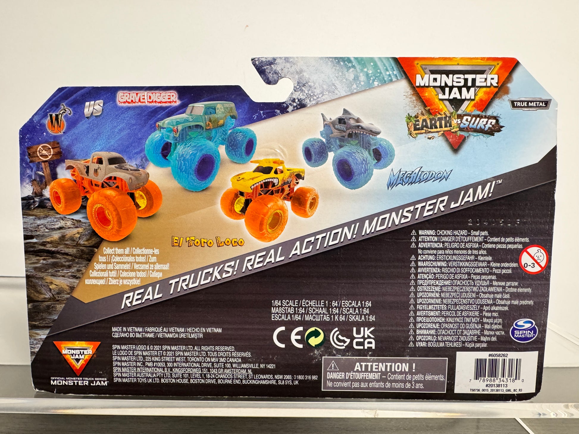This Earth vs Surf release is a fun addition for Monster Jam fans and collectors looking to add unique, themed trucks to their collection.