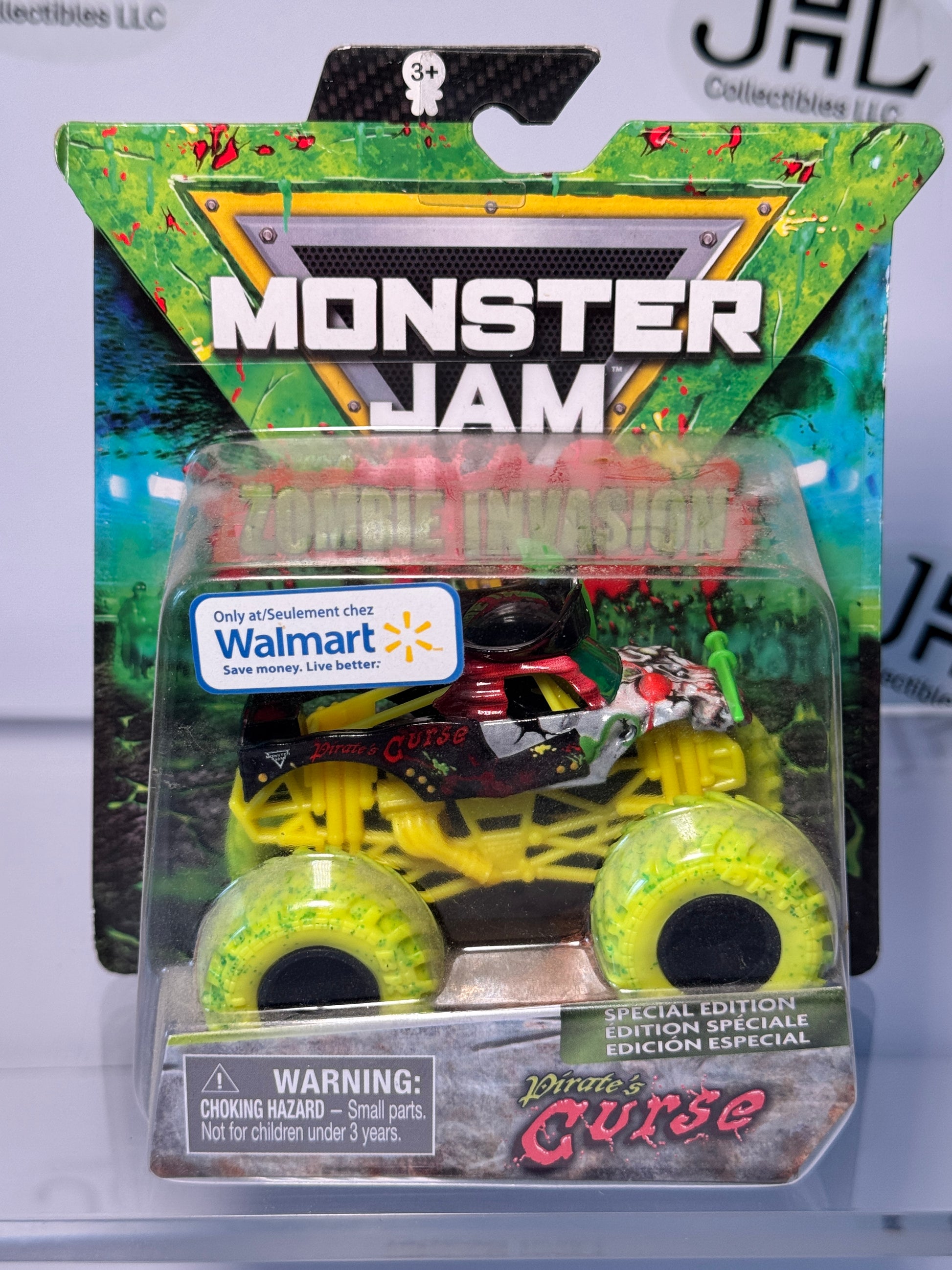 The undead pirate rises again! This Zombie Invasion edition of Pirate’s Curse features eerie zombie-styled graphics, bold detailing, and the rugged look collectors expect from this fan-favorite Monster Jam truck.